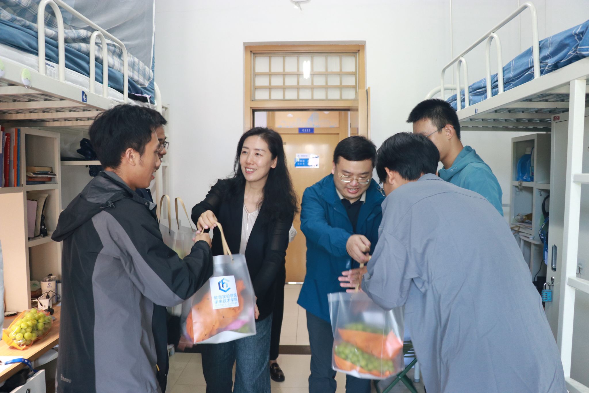 检查期间,学院领导亲切询问同学们的学习生活近况,并为大家送上中秋问候。牟蕾叮嘱同学们:“无论返乡还是留校,都要牢记安全第一,提高自我防护意识。团圆之时,也别忘了向家人表达感恩与祝福。”学校学院为每位同学准备了中秋礼物,传递温暖的节日关怀。