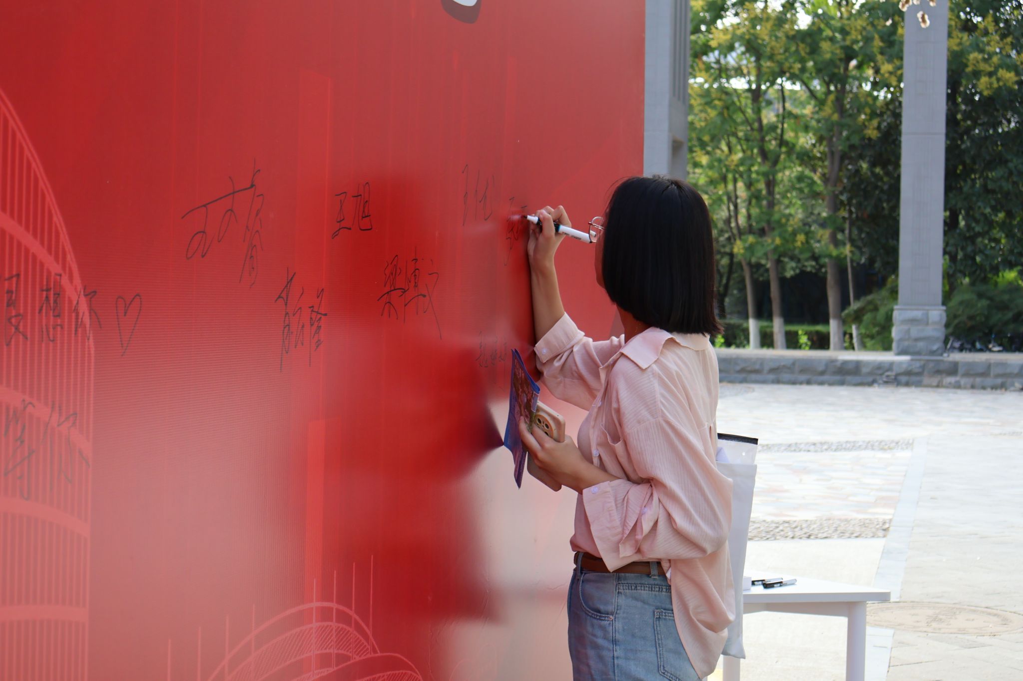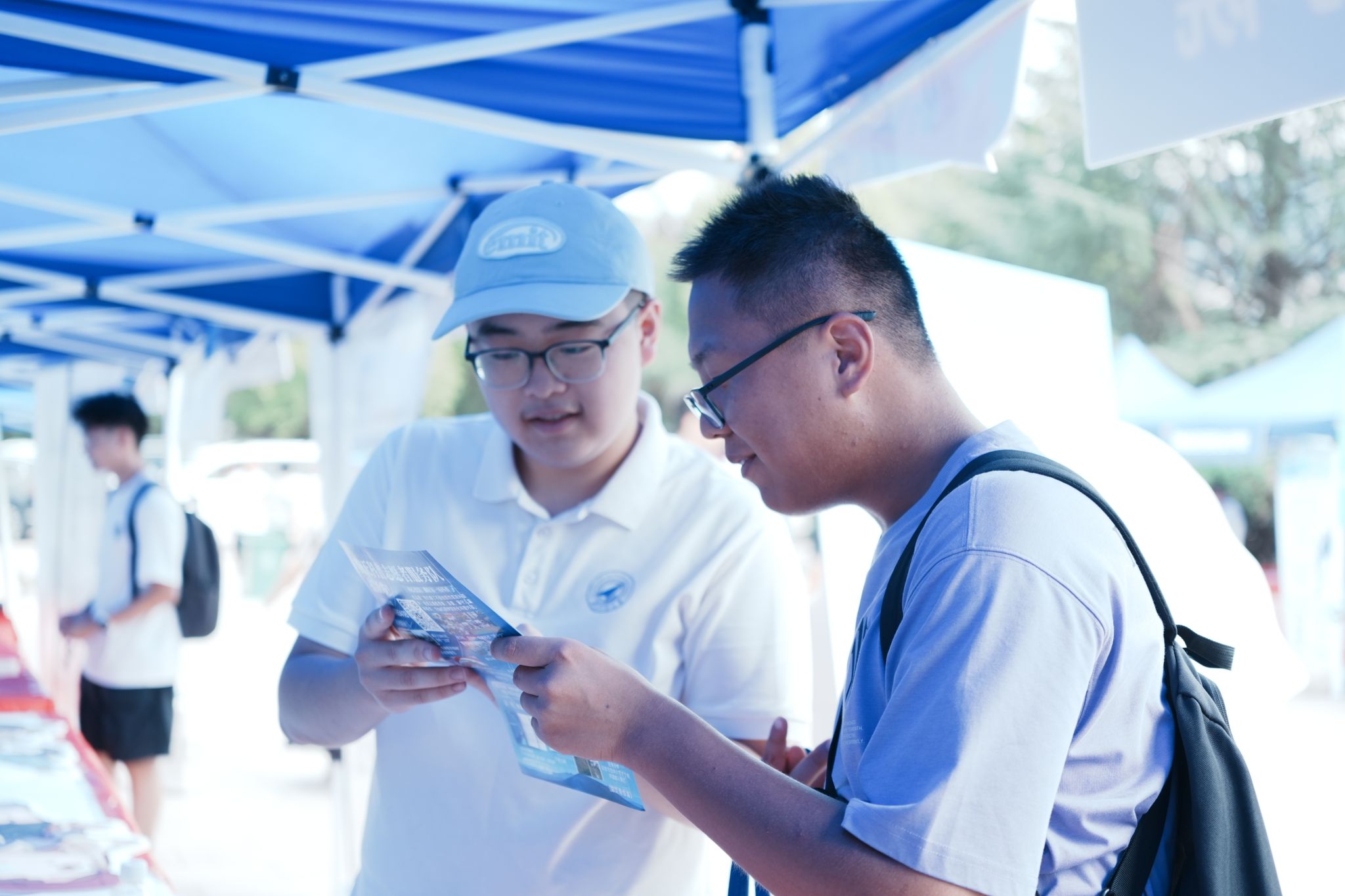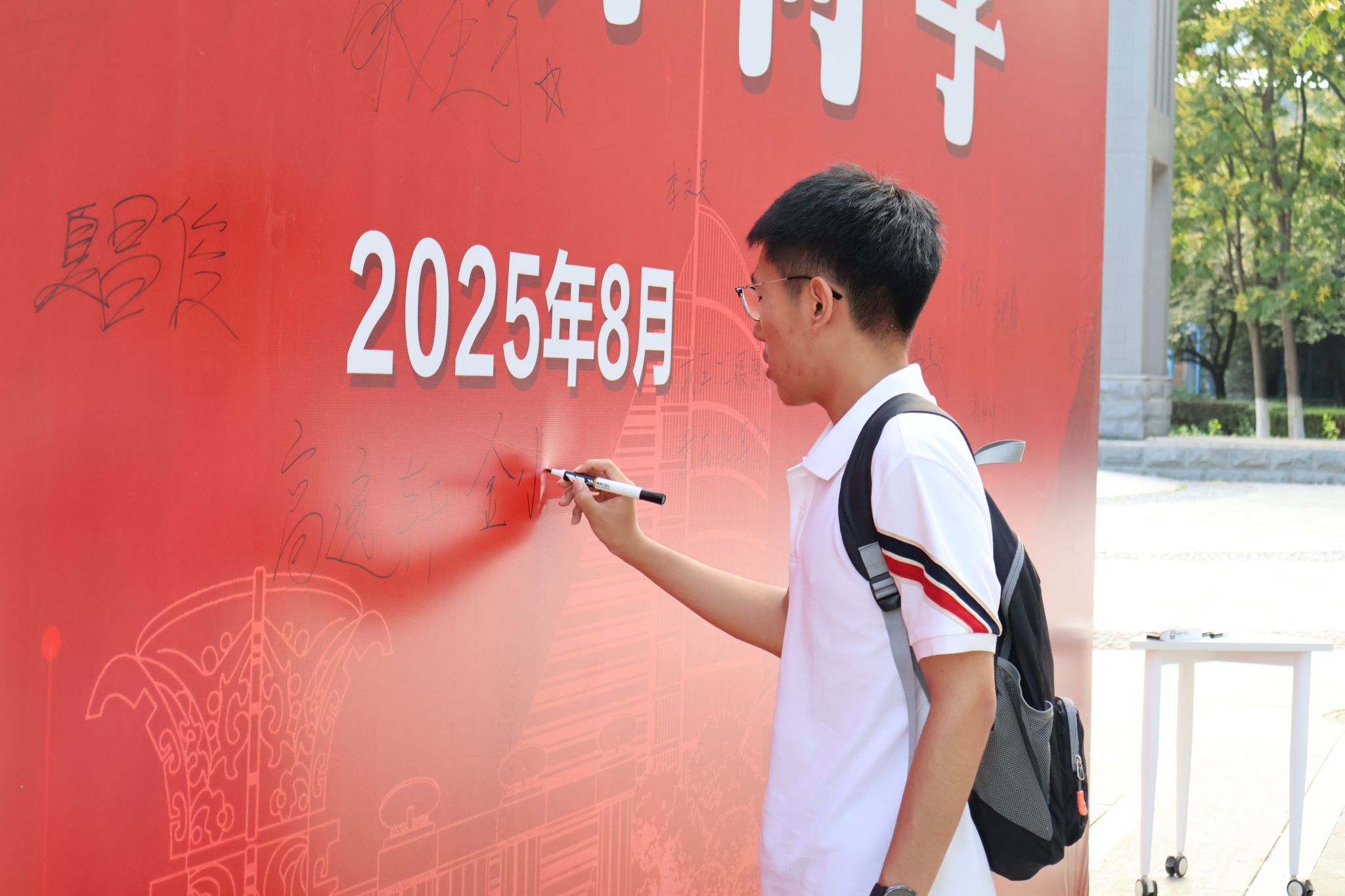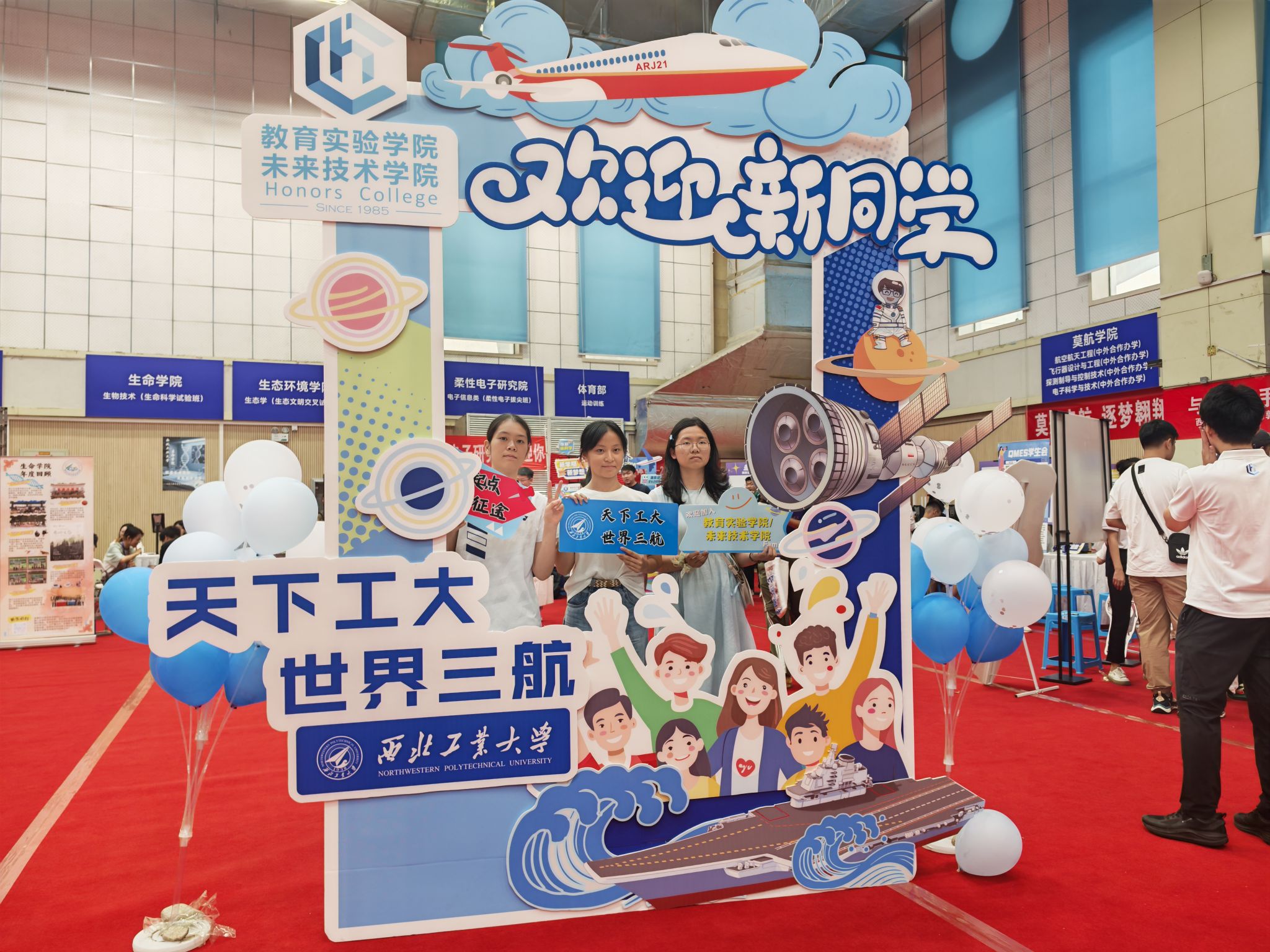 萌新们在家长的陪伴下开启了温馨的报到之旅:在体育馆内场提交档案,领取满载心意的新生礼包;移步外场,倾听志愿者的耐心讲解,了解校园概况、学院特色;来到学院报到处,新生们拿起马克笔郑重签下自己的名字,写下对大学生活的无限期许与美好愿望,并于特色合影板前定格与学院的第一张珍贵合影。