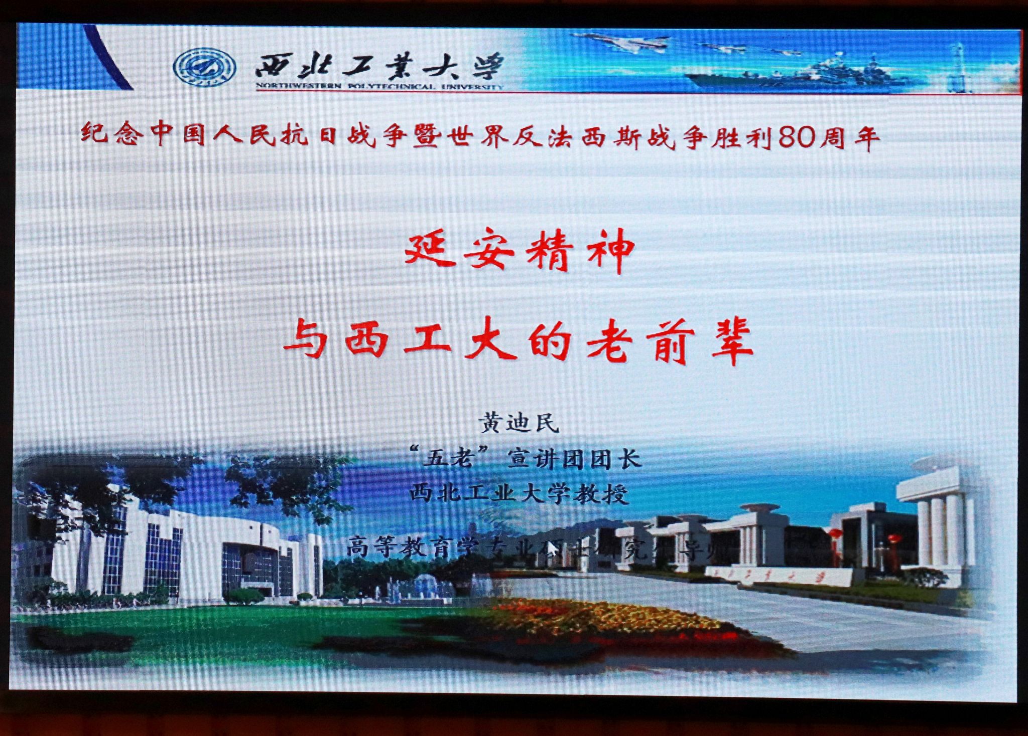 在校史校情讲座中,黄迪民以《延安精神与西工大的老前辈》为题,系统梳理了学校“脉源三支”的办学历史,回顾了刘海滨、寿松涛等老一辈西工大人在艰苦条件下推动学校学科建设、服务国防事业的奋斗历程,展现了西工大人扎根西部、献身国防的文化传统。