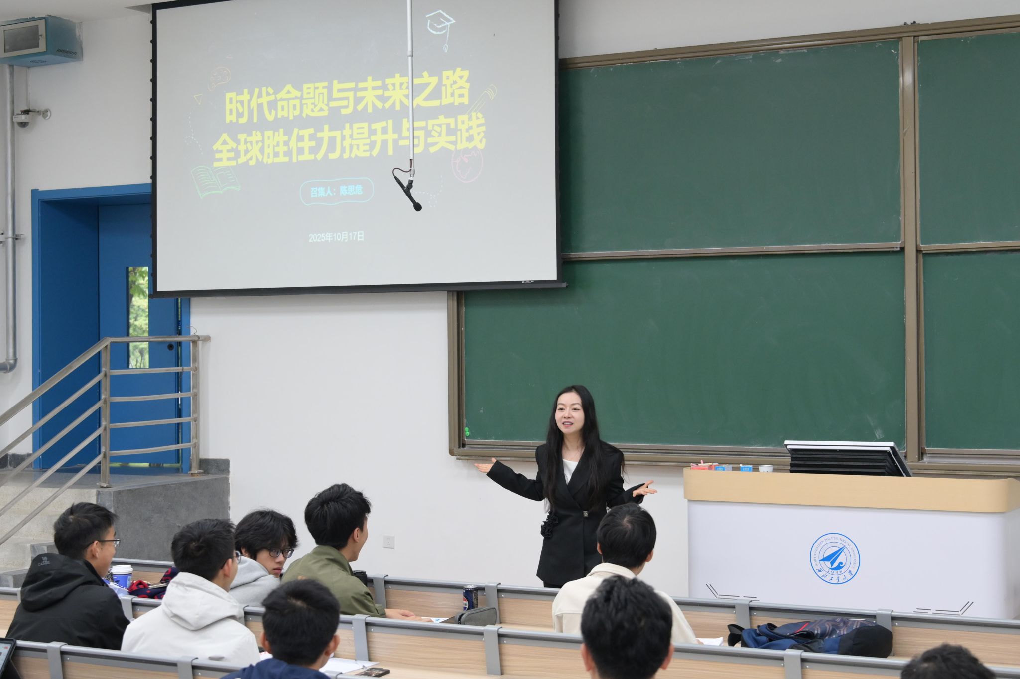 随后,陈思危老师系统梳理了全球胜任力人才需具备的核心素质与能力。她从认知层面、技能层面、素养层面进行多维解读,强调除了扎实的专业知识、跨文化沟通能力、国际规则运用能力等技能外,全球视野、人文关怀、责任担当等素养同样不可或缺,为同学们构建了清晰的全球胜任力认知框架。