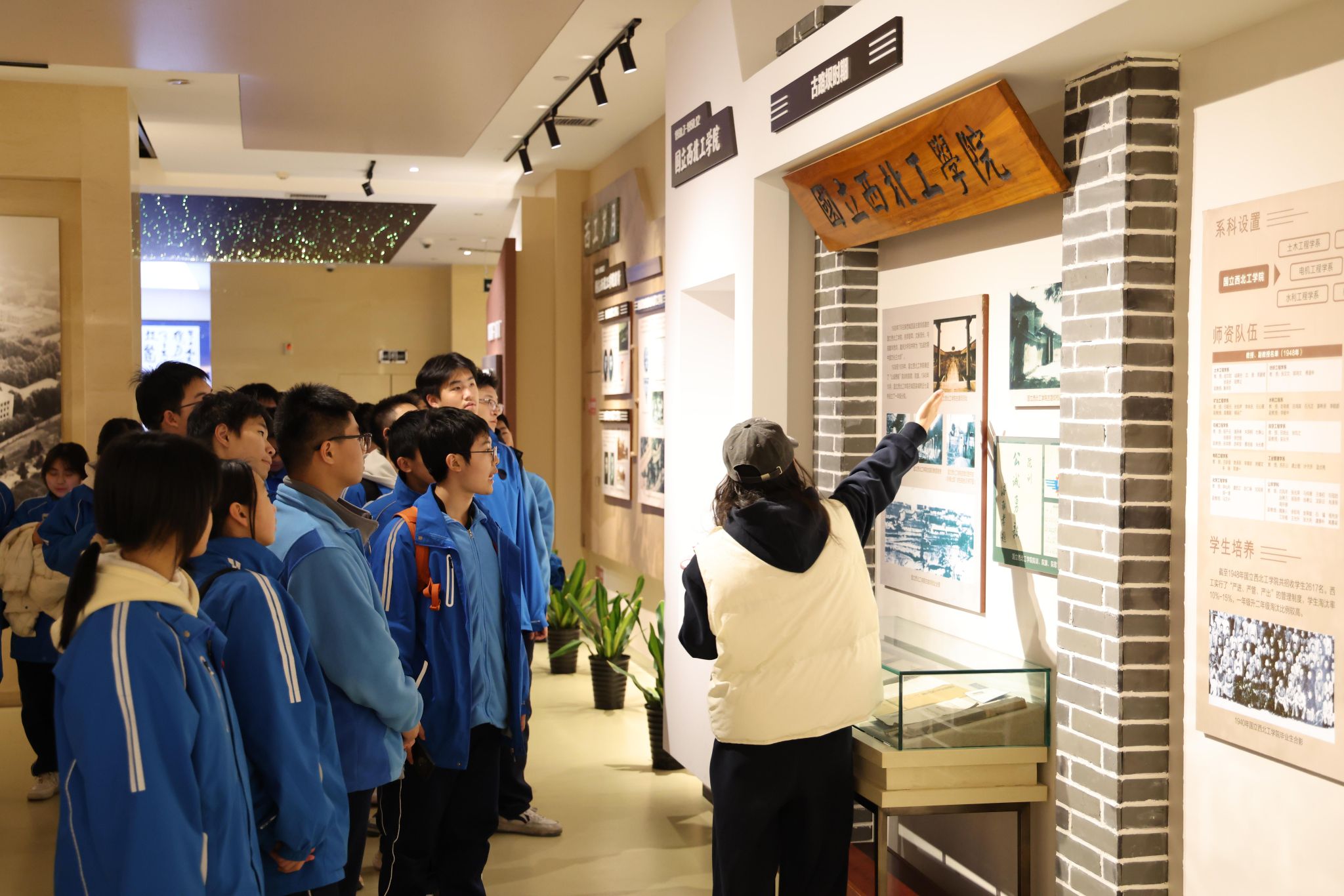 随后,师生们参观了校史馆、军工素质教育实践中心(博物馆)、何尊组雕等场所,学生志愿者详细介绍了学校办学历史和学校特有的“总师育人文化”,围绕大学课程设置、科研实践、校园生活等内容与师生代表深入交流。